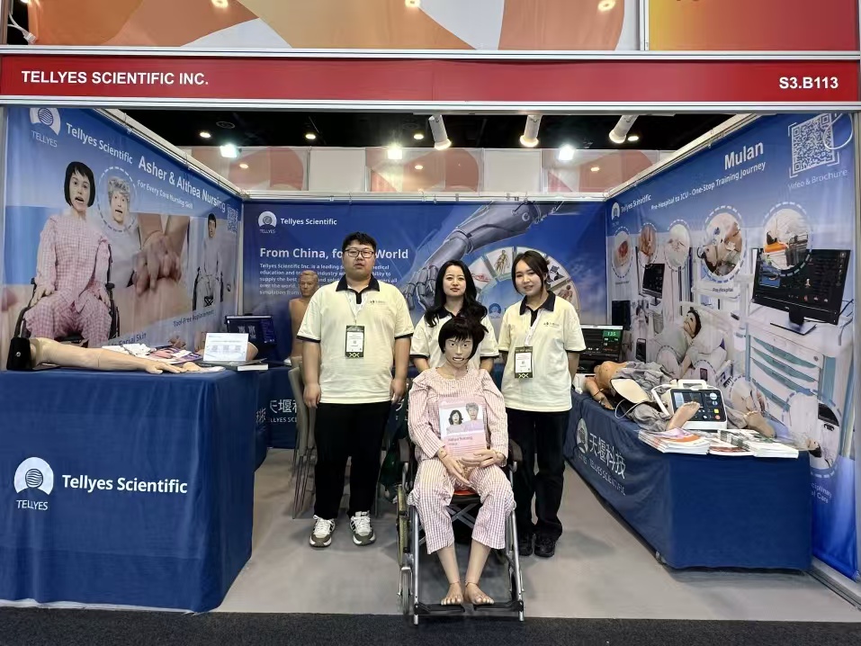Tellyes team made a splendid appearance at Booth S3.B113, showcasing a range of high-end intelligent simulators including MULAN-Multifunction Patient Simulator, Althea Nursing, SP Brothers-Standardized Patient Brothers, Complete Childbirth Simulator (Twins), and DefibReady. On the very first day, our booth attracted over a hundred experts from more than 40 countries and regions for visits and hands-on experiences.