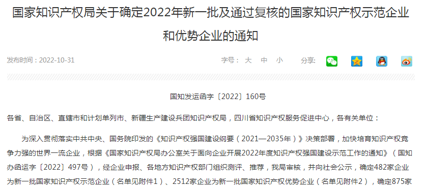 近日,国家知识产权局发布了新一批国家知识产权示范企业和优势企业名单,米兰官方端网站登录入口-米兰(中国) 成功被评为新一批国家知识产权示范企业,这是自天堰被评为全国企事业知识产权试点单位、全国知识产权优势企业、全国版权示范单位等称号以来,再次获得国家级荣誉。