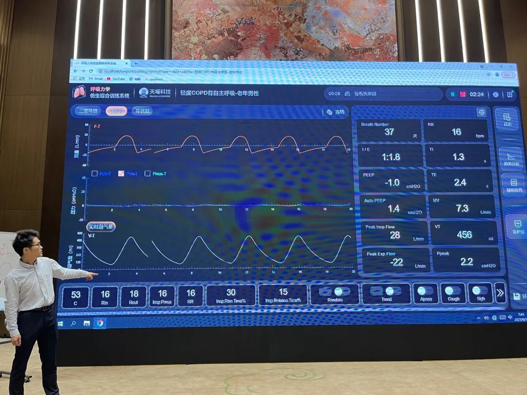 此外,来自中国科学技术大学附属第一医院(安徽省立医院)的金魁主任在讲授主旨为“异常波形分析”的论坛讲座时,使用了米兰官方端网站登录入口-米兰(中国)“模拟肺”内置的呼吸力学模型——“轻度COPD有自主呼吸 老年男性”,帮助参会学员更好的理解存在肺部疾病患者机械通气时通气波形的特点及监测参数异常改变。金魁主任对“模拟肺”给予了高度肯定,并建议学员课后有时间都可以进行实操训练。